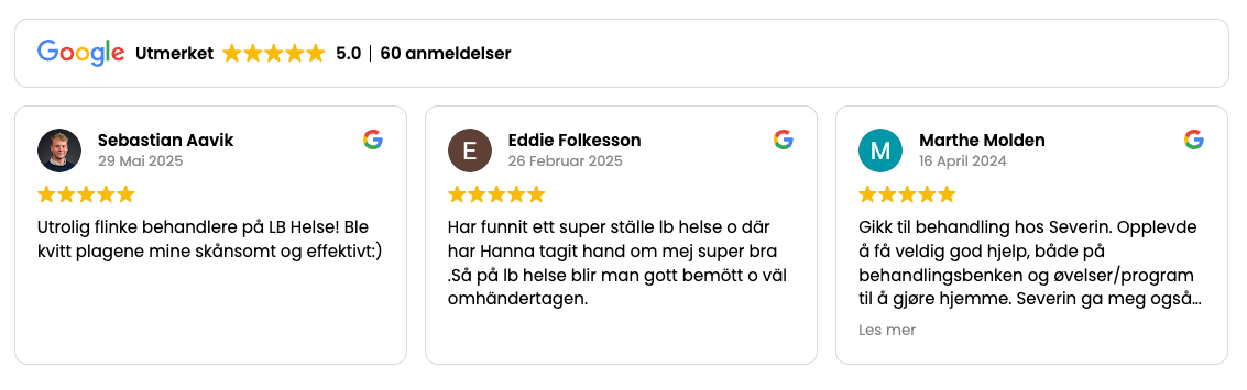 Time på dagen | 300+ fornøyde pasienter | Erfarne, autoriserte behandlere